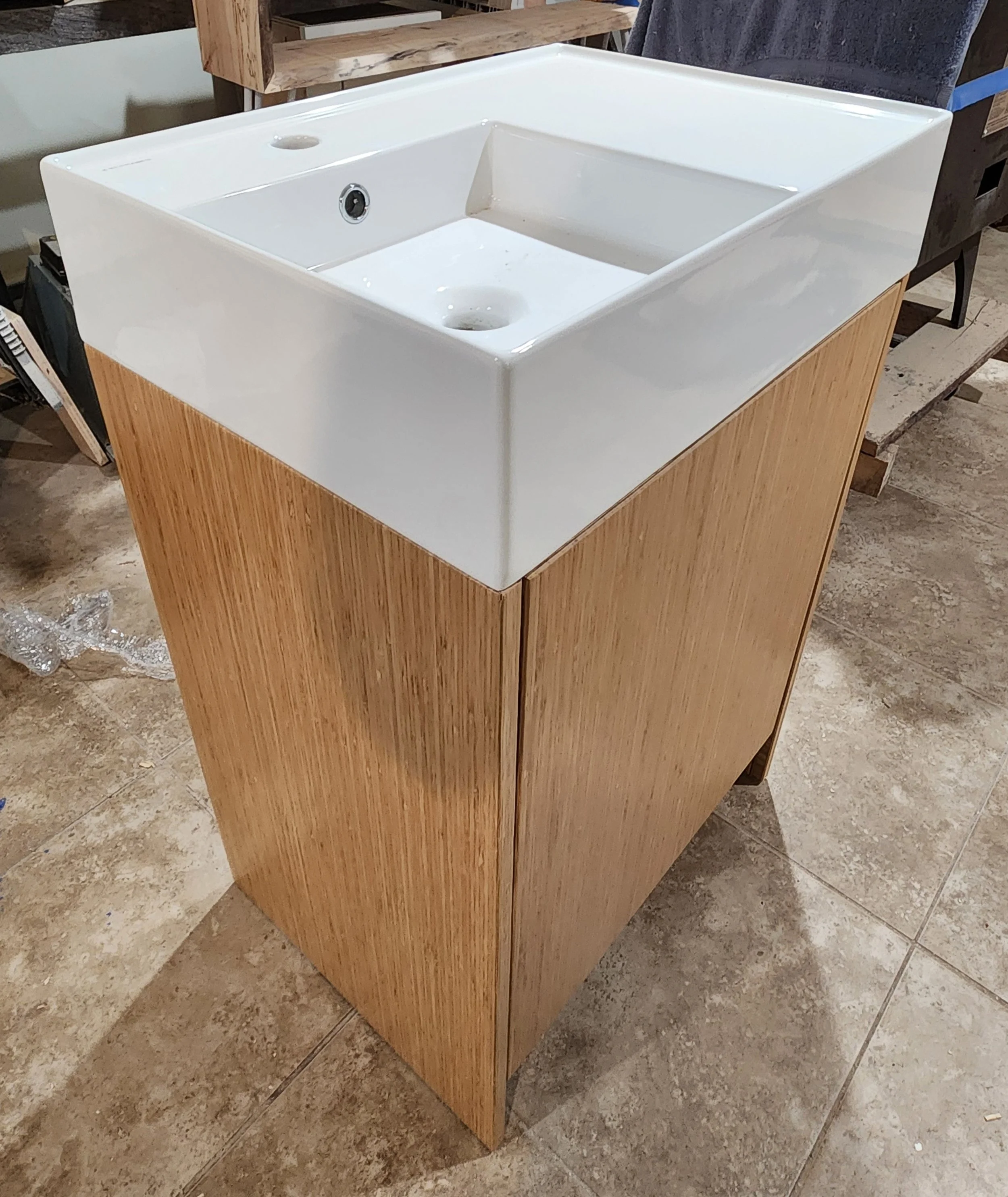 INTEGRATING SIMPLE YET FUNCTIONAL ASPECTS INTO THIS MORE MODERN STYLE, BUT KEEPING IT WARM WITH THE CARAMELIZED COLOR TONES OF THE BAMBOO MATERIAL AND DEEP DETAIL OF THE GRANITE COUNTERTOP. ALSO IN THE PACKAGE ARE THREE VANITIES IN THE SAME MODERN STYLING.