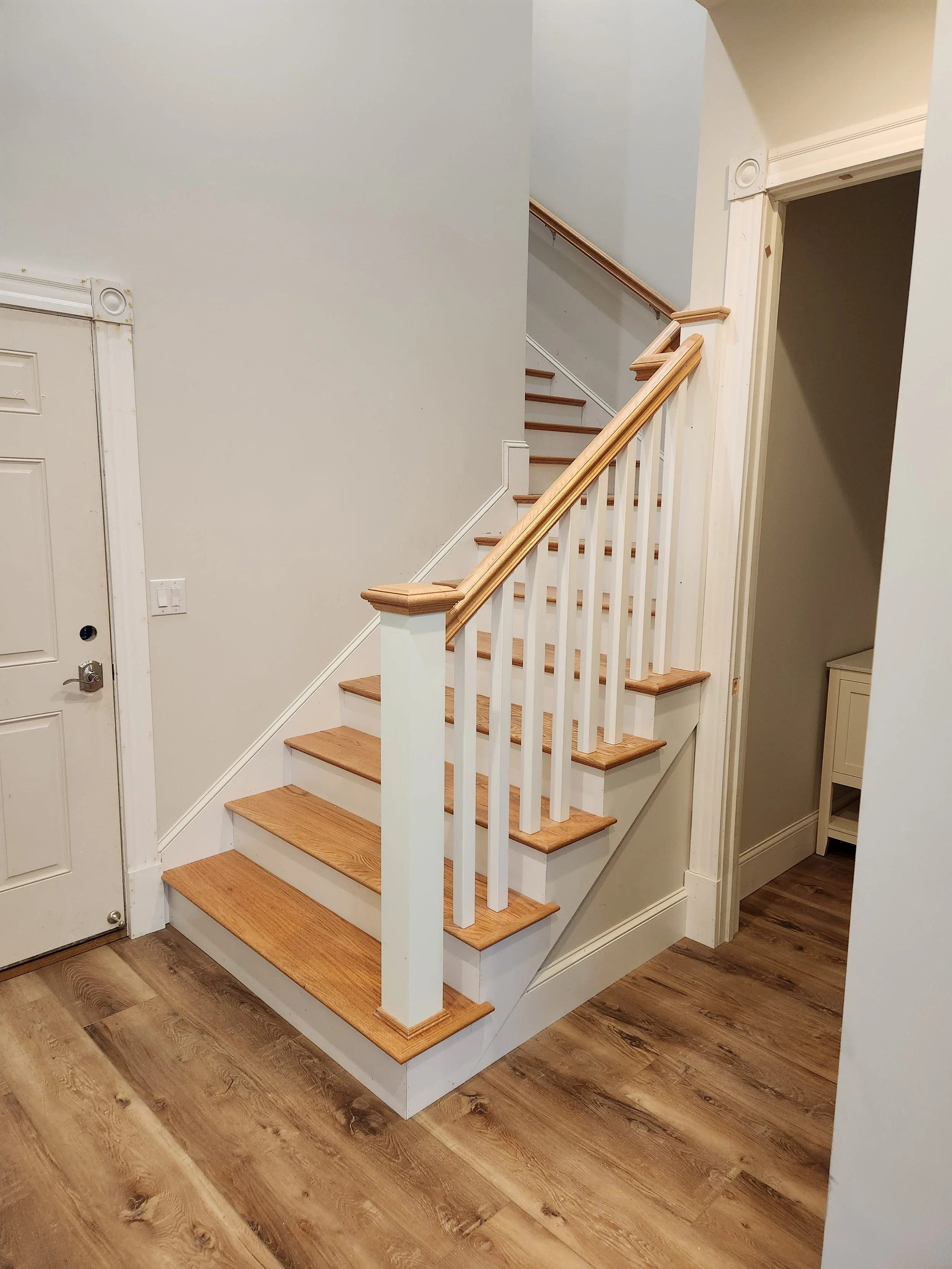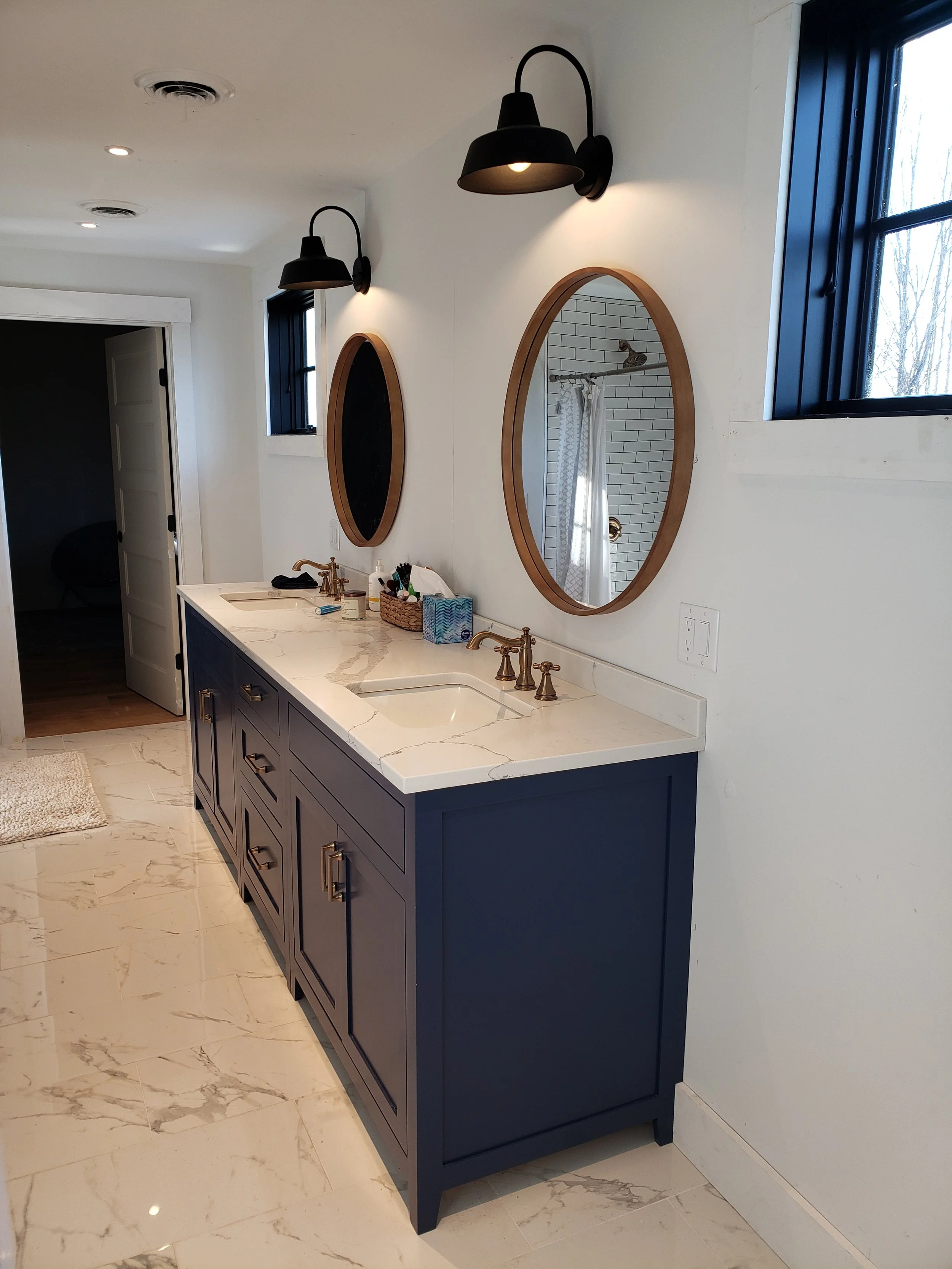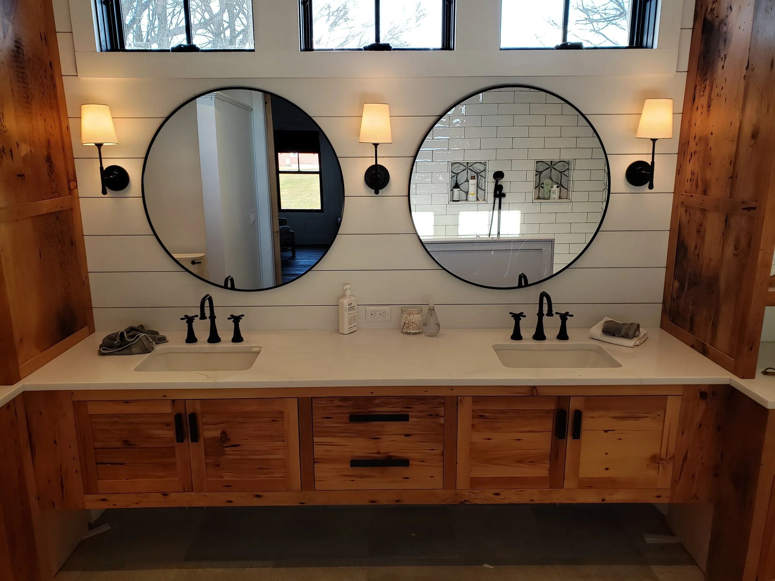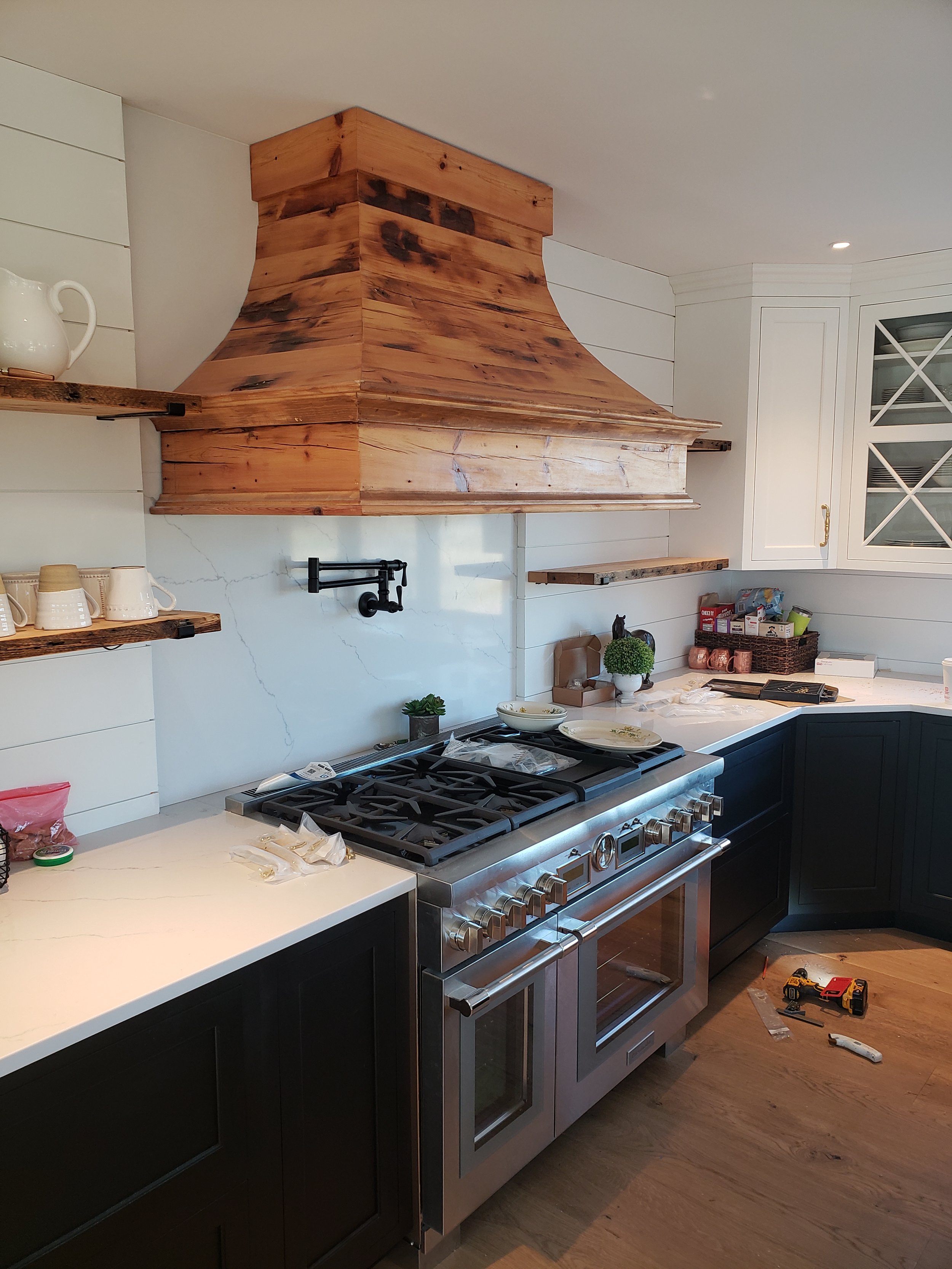 THIS PROJECT TOOK MANY BLIND TURNS AS WE ENCOUNTERED THE UNEXPECTED (OR TO BE EXPECTED IN A BUILDING OF THIS AGE WITH NUMBEROUS ADDITIONS OVER A CENTURY PLUS). BUT IN TH END WITH THE HELP OF SO MANY SUBCONTRACTORS AND TRADES WE FINISHED ON A HIGH NOTE. EVERYTHING IN THIS ENVELOPE IS CUSTOM. FROM THE RECLAIMED FLOOR BOARDS (BURN MARKS AND ALL) WHICH WERE TRANSFORMED INTO THE CURVED STOVE HOOD AND PRIMARY VANITY, TO THE CEILING HEIGHT IN THE GREAT ROOM, WHITE OAK FLOORS, CUSTOM BUILT DOORS, ETC. THIS WAS A PROJECT TO REMEMBER.