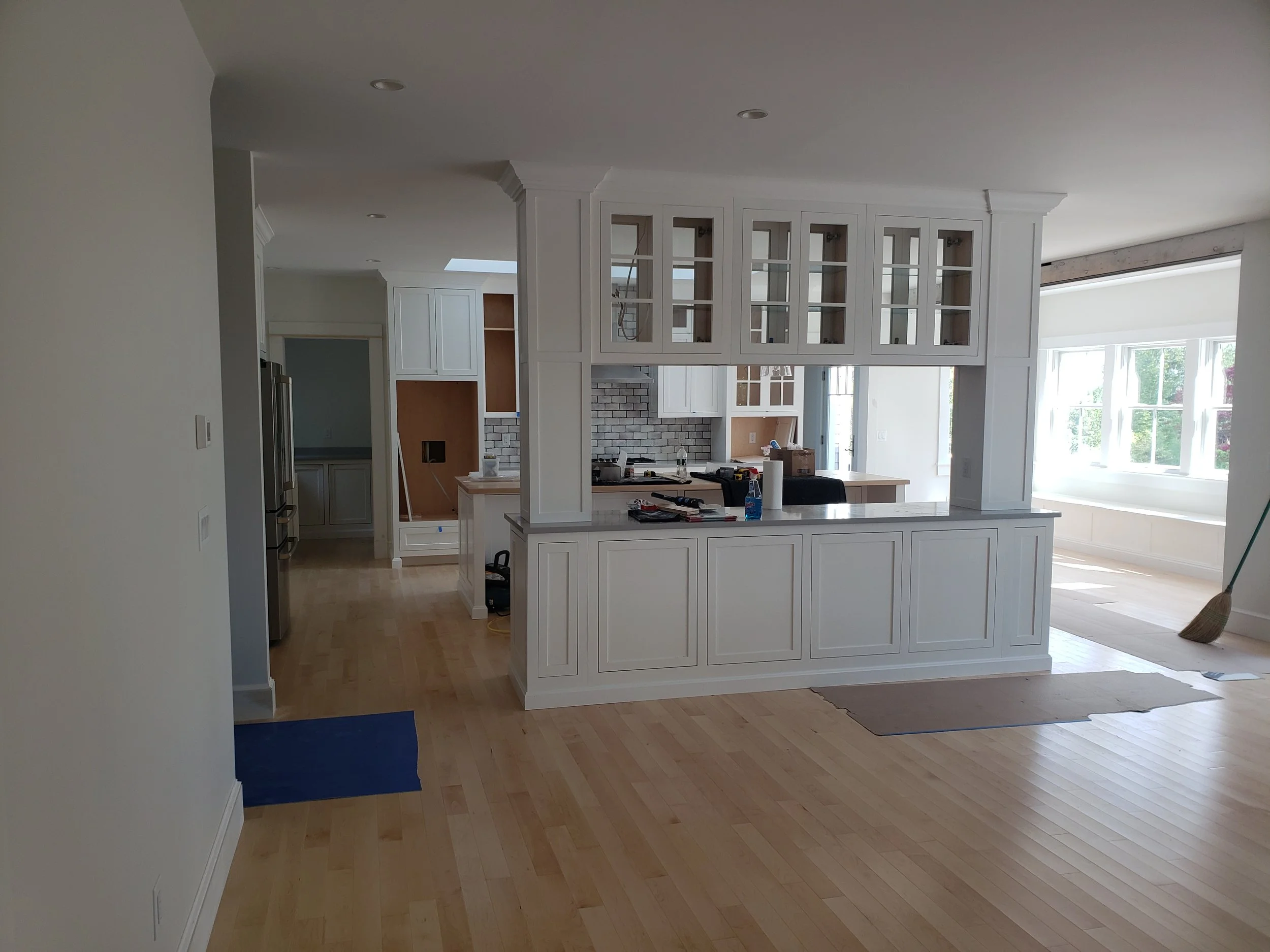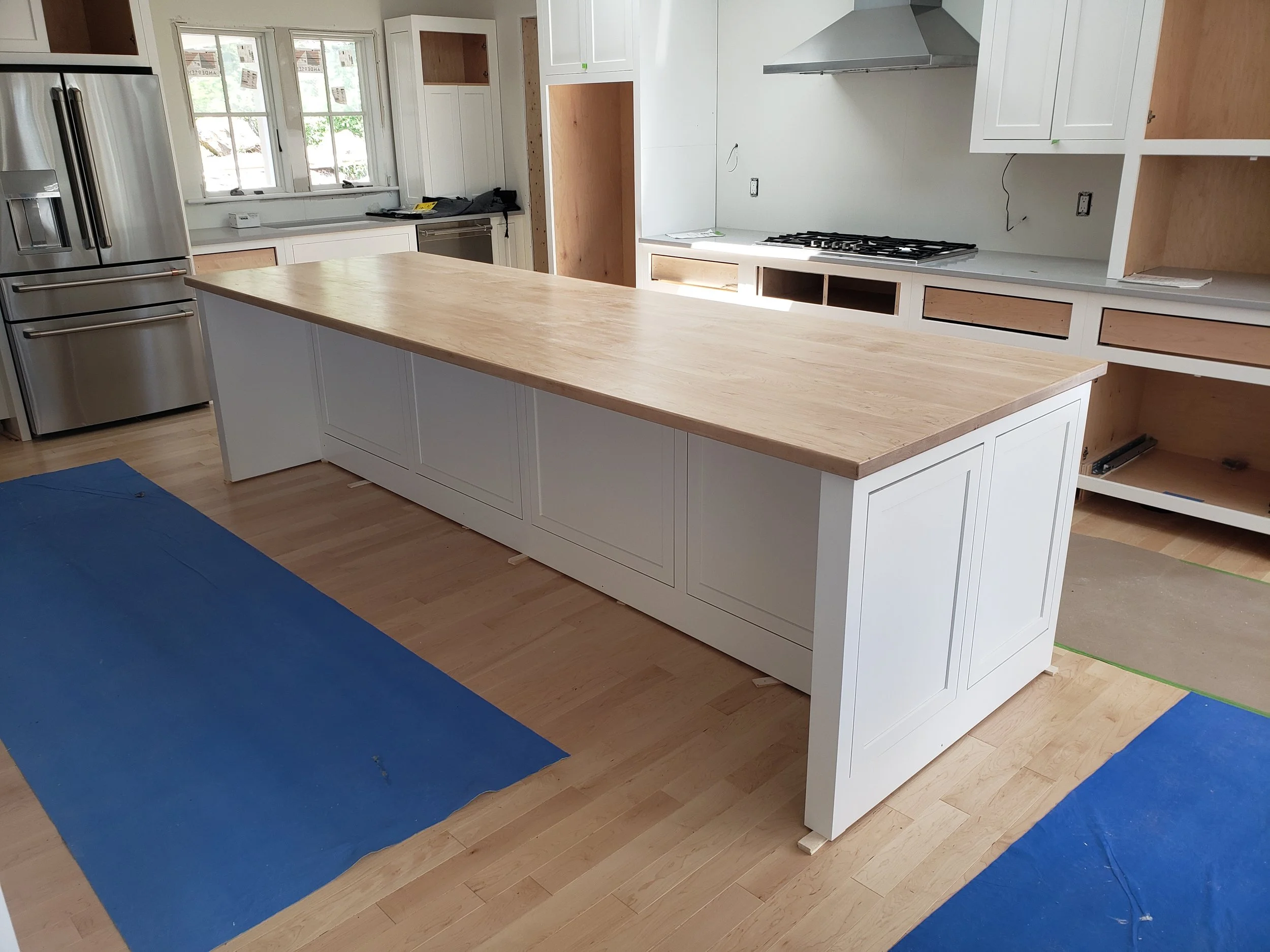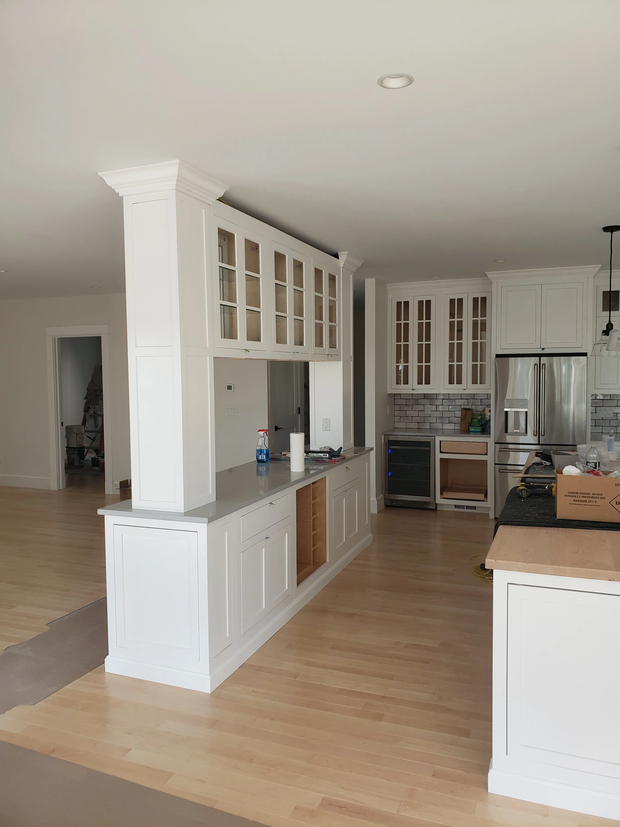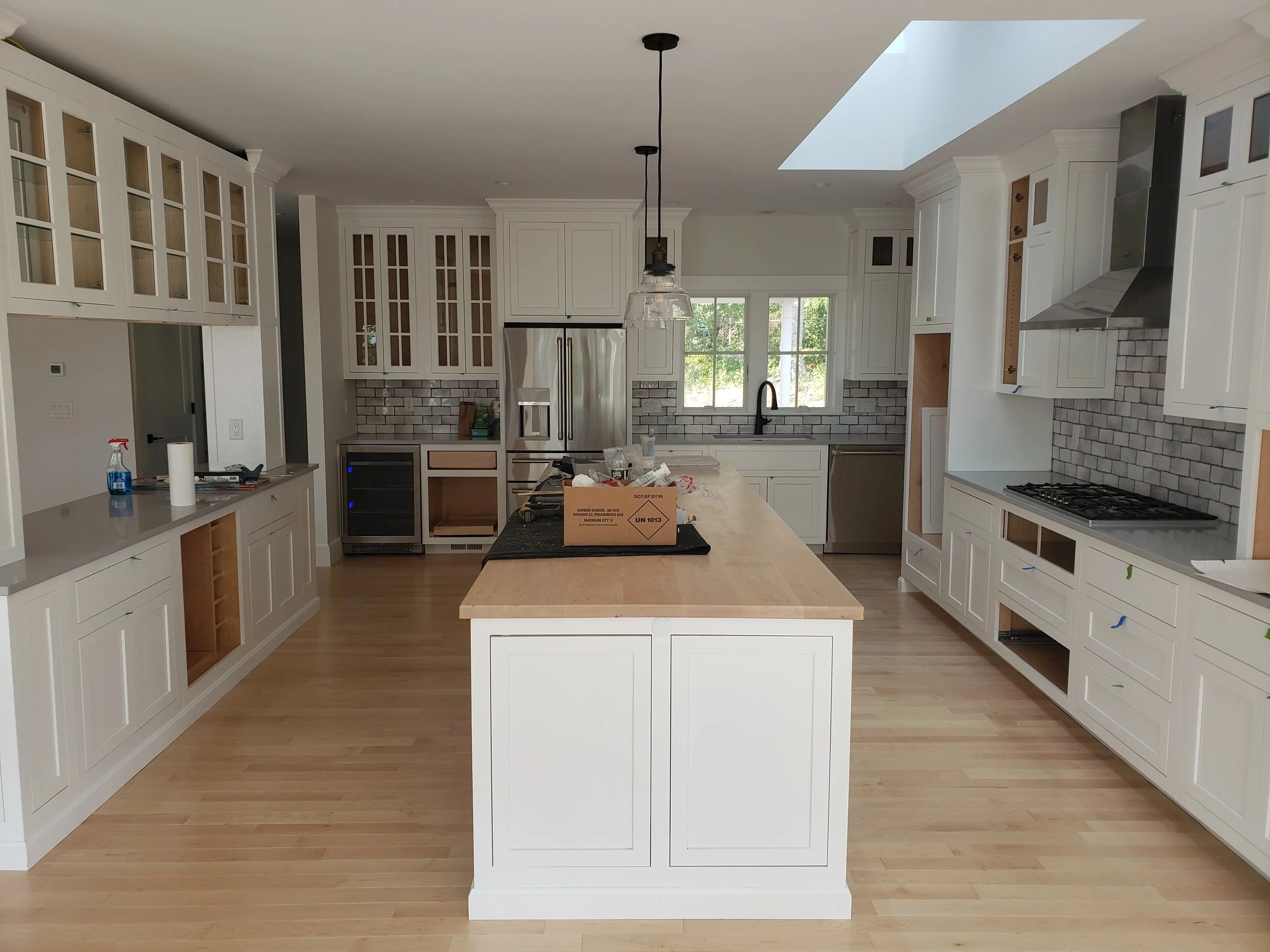 THIS PROJECT WAS PART OF A NEW BUILD IN THE TOWN OF ELIOT, MAINE. IN ADDITION TO MULTIPLE BATHROOM VANITIES, BAR/SOCIAL ROOM AND CUSTOM STAIRCASE, THIS KITCHEN WAS A TRUE ORIGINAL.