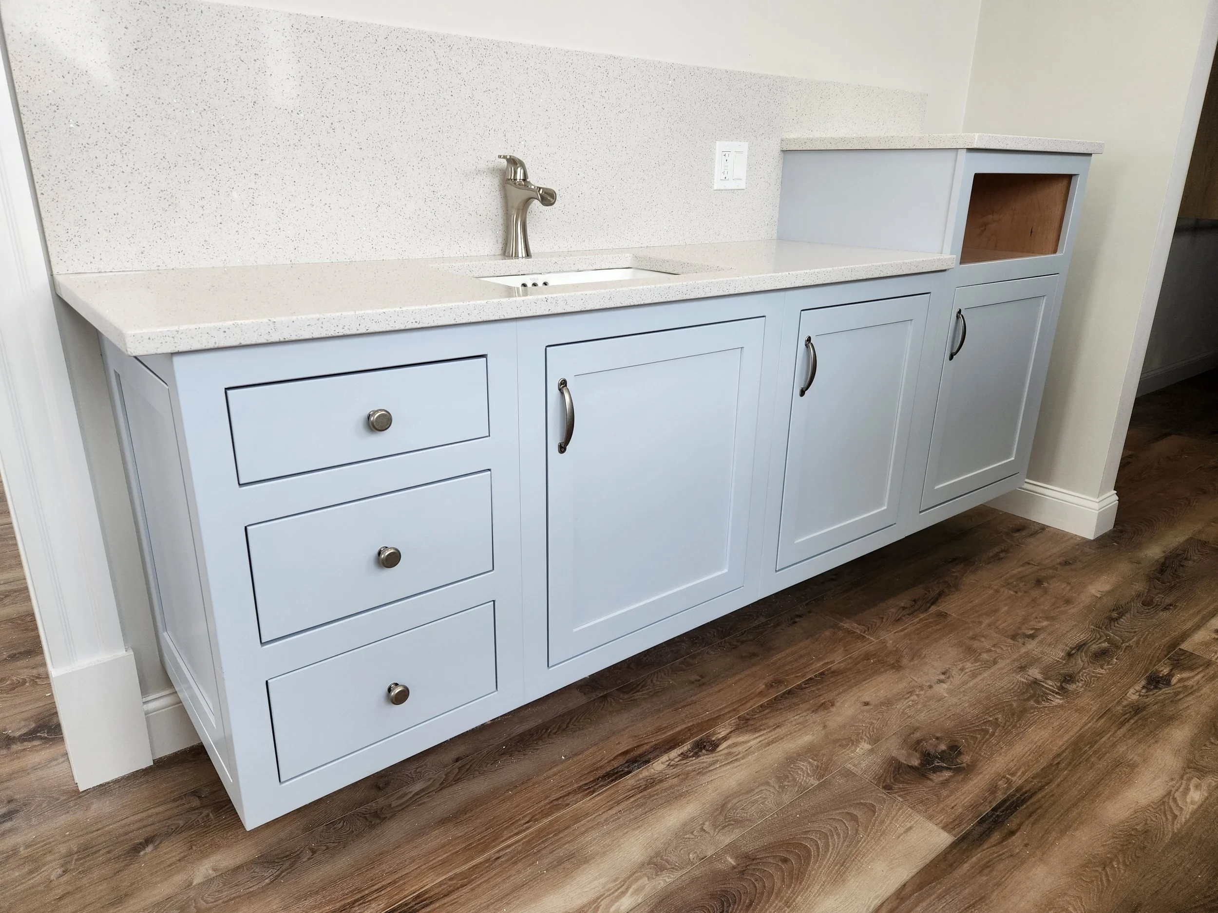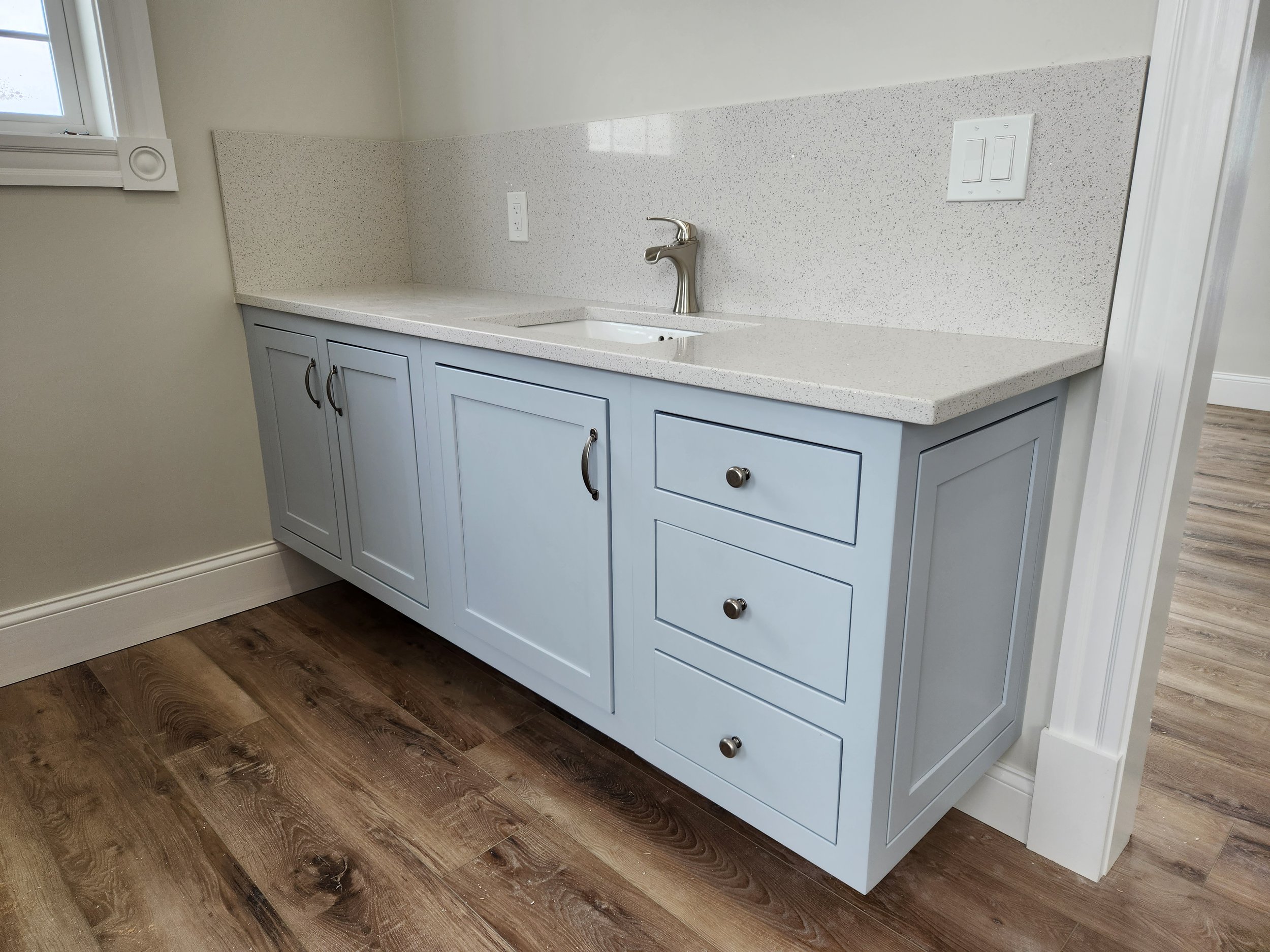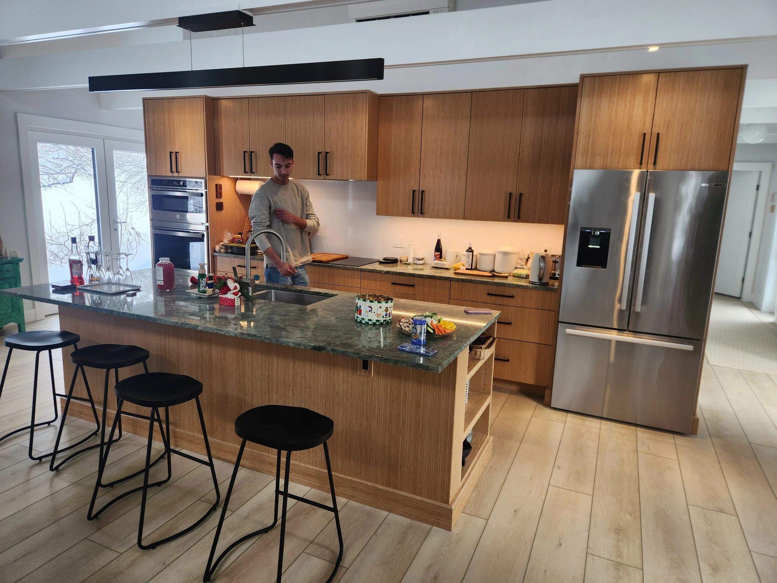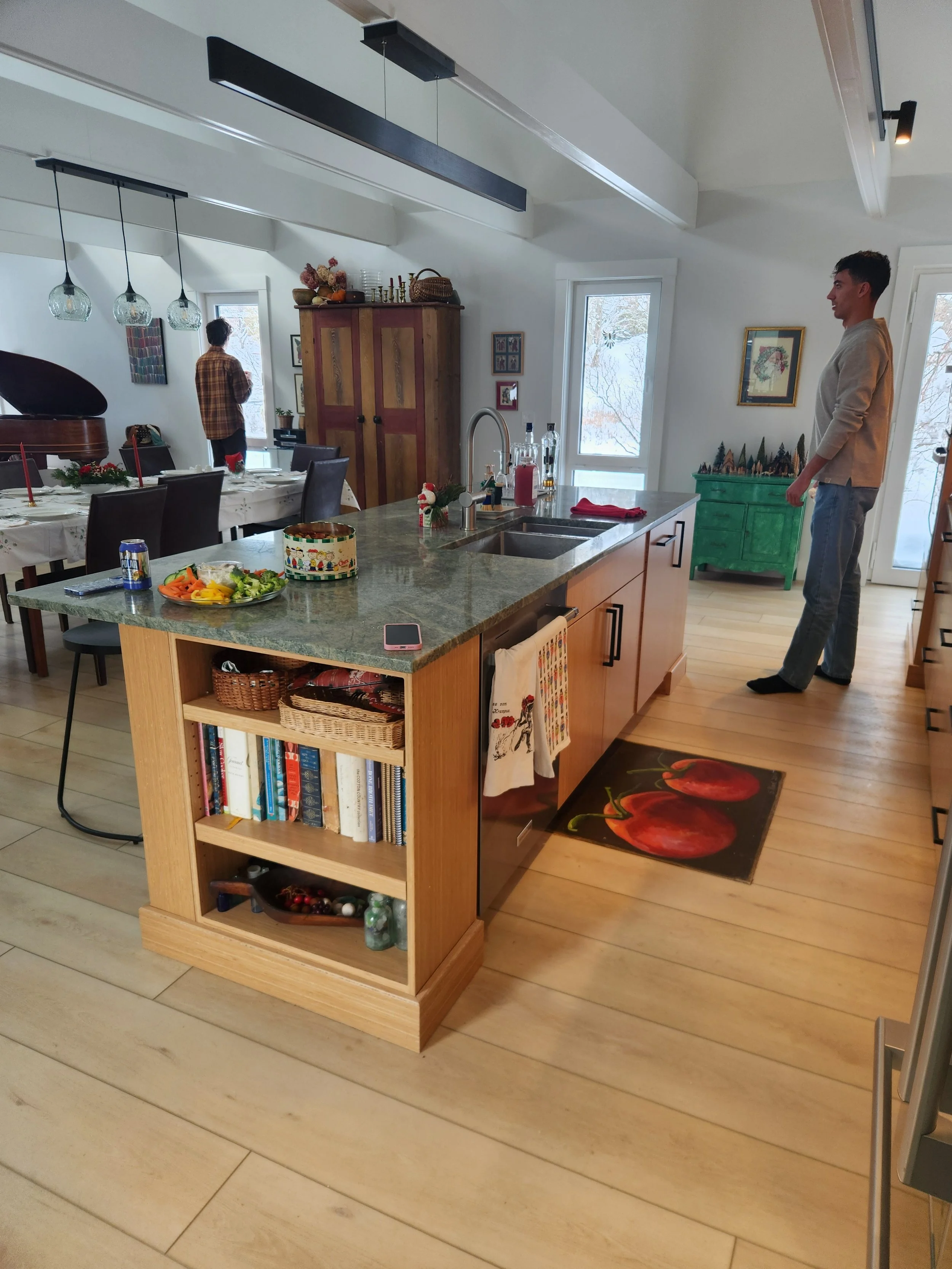 THIS PROJECT WAS PART OF A NEW BUILD IN THE TOWN OF ELIOT, MAINE. IN ADDITION TO MULTIPLE BATHROOM VANITIES, BAR/SOCIAL ROOM AND CUSTOM STAIRCASE, THIS KITCHEN WAS A TRUE ORIGINAL.