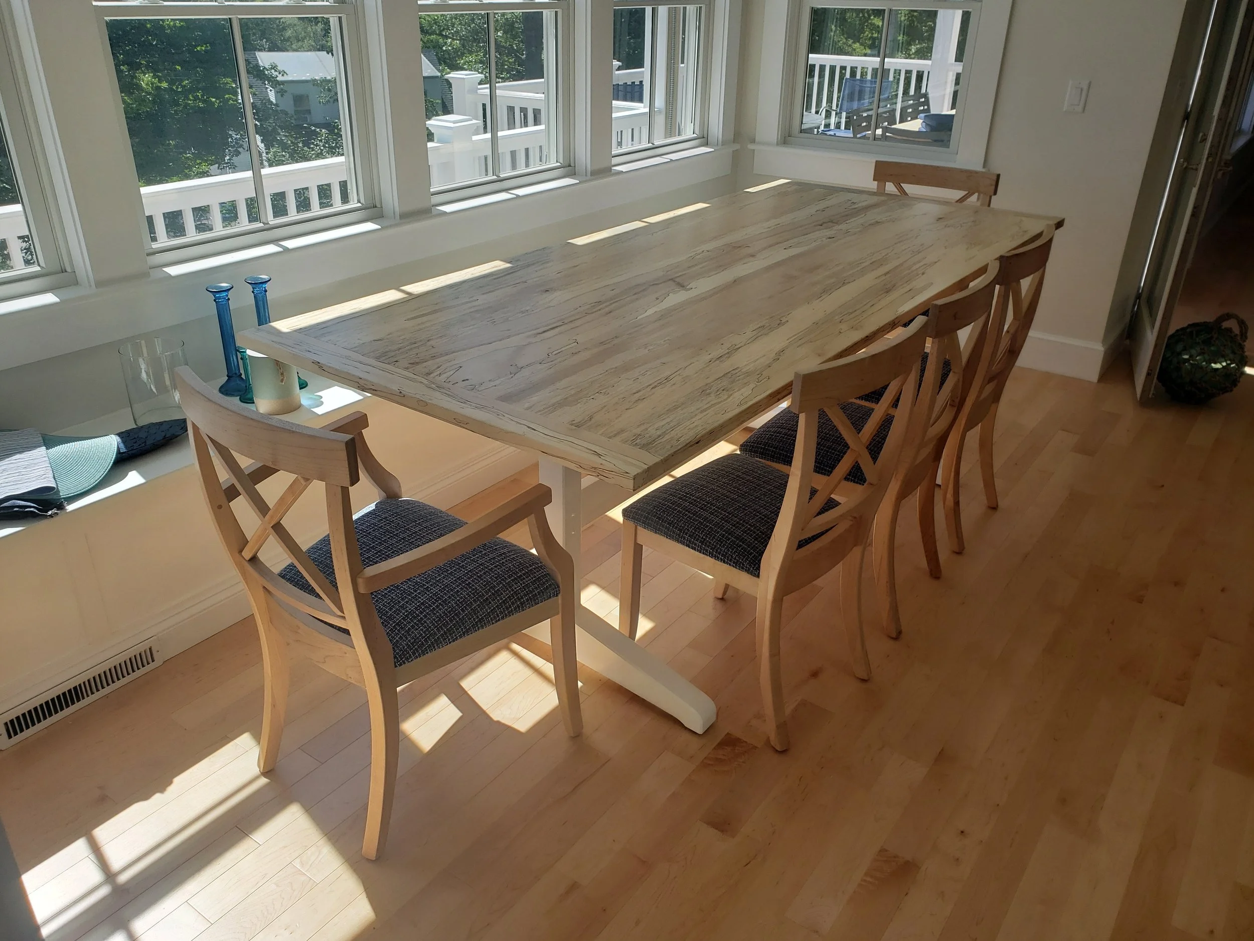FROM THE SPACIOUS KITCHEN LAYOUT, INCLUDING A VERY LARGE MAPLE TOPPED ISLAND WITH SEATING, TO THE GLASS UPPER DIVIDING WALL THAT SEPERATES IT FROM THE LIVING ROOM. THE LARGE PANTRY, FANTASTIC MUDROOM, VANITIES FOR THE FOUR BATHS, TWO VERY LARGE ENTERTAINMENT BUILT-INS, CUSTOM MIRROR FRAMES AND TO TOP IT OFF… A LARGE SPALTED MAPLE DINING TABLE WITH BANQUETTE SEATING IN THE ALCOVE.